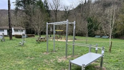 - De la gare, descendre pour rejoindre la route d'accès au village vacances de Moulès sur votre gauche. 900m plus loin tourner à droite sur le chemin balisé. Après 120m, sur votre gauche vous pouvez faire un aller-retour jusqu'au sarcophage.