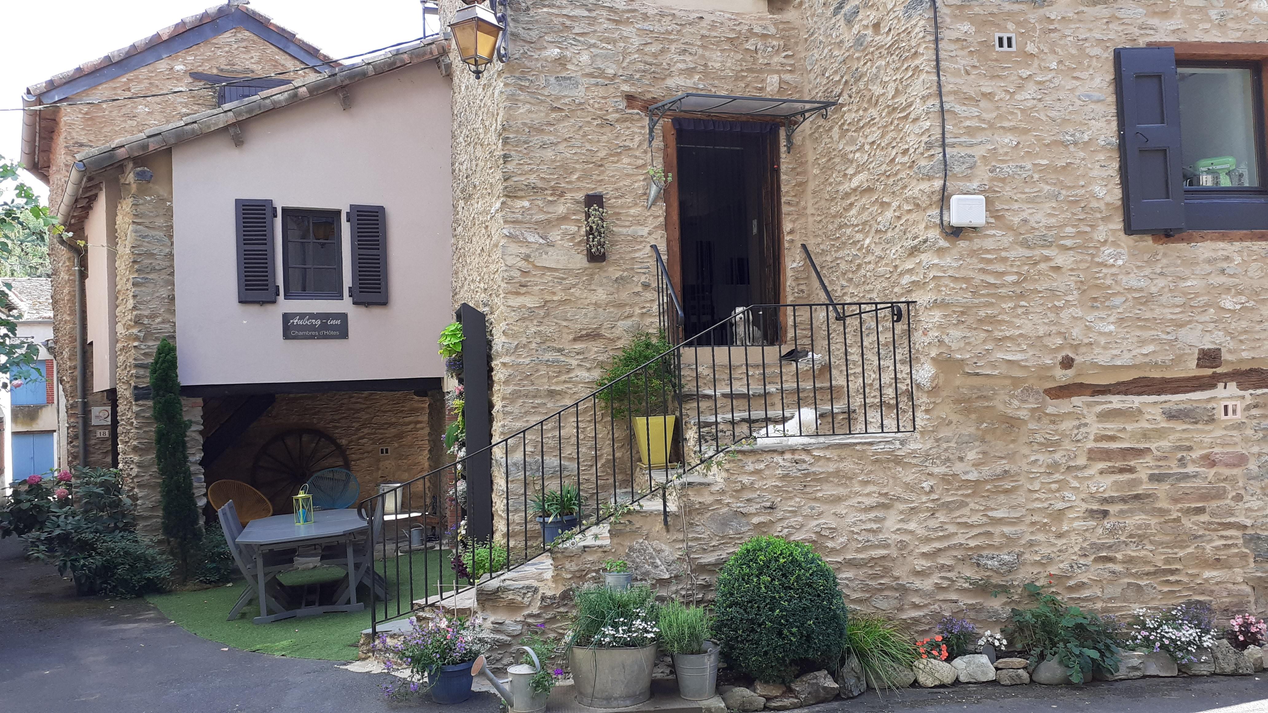 L'Auberg'inn à la Condomine, dans la vallée du Tarn, en bordure de la rivière, dans un petit hameau médiéval, à proximité d'Ambialet et son impressionnant méandre dessiné par le Tarn, et tout proche d'Albi et sa fameuse Cité Episcopale classée au patrimoine Mondial de l'UNESCO. A peine plus loin, Cordes-sur-Ciel, élu plus beau village de France en 2015, Gaillac et son vignoble, plus en amont dans la vallée Millau avec son Viaduc légendaire. L'Auberg'inn, c'est une maison typique de village du 17éme siècle. Que vous soyez féru d'histoire, de pêche, de canoë-kayak, de bronzage au bord de l'eau, ou partisan de randonnées à vélo, à pied ou à cheval, ce petit bout de vallée du Tarn répondra à toutes vos attentes.