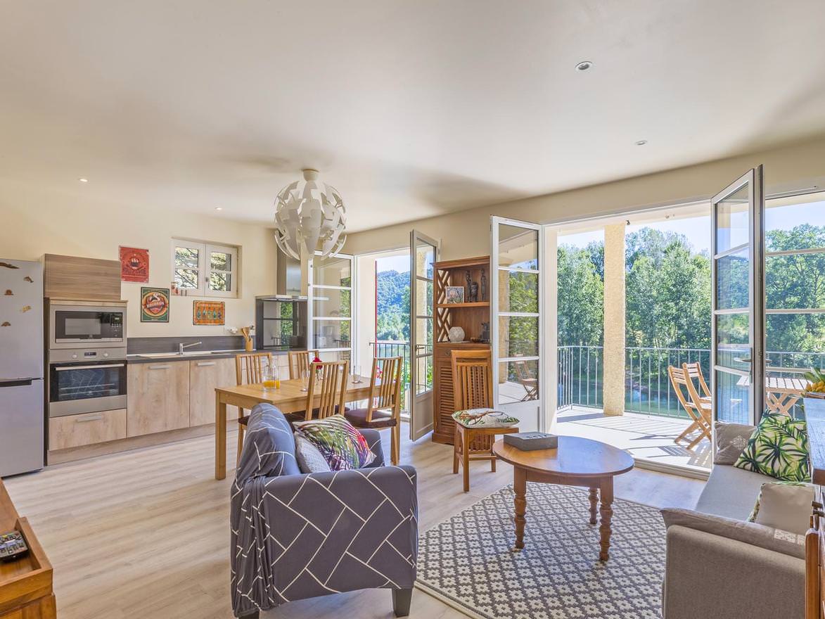 Dans une ancienne maison des bords de Tarn, rénovée à neuf en 2020, un appartement de 60 m², avec une grande terrasse (20m²) en balcon sur l’isthme du Tarn. Situé dans la ville haute, vous êtes en face de l’arrivée des canoës et kayaks de Trébas. Un jardin partagé d’environ 500 m2 mène au Tarn et à ses berges, d’où vous pouvez pêcher tout en profitant du calme et de la tranquillité de l’endroit.