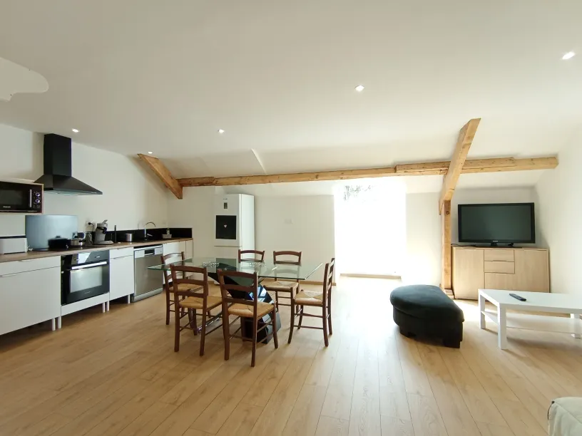 Appartement cosy et tout confort, refait à neuf, spacieux et parfaitement équipé pour vos séjours en famille ou entre amis. Vue sur les champs et très grand parking pour les pêcheurs.