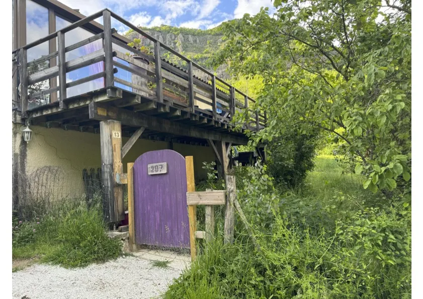 Détente et déconnexion sont au rendez-vous, la rivière coule paisiblement en contrebas, offrant calme et charme à la sortie d'un petit village en pleine campagne.