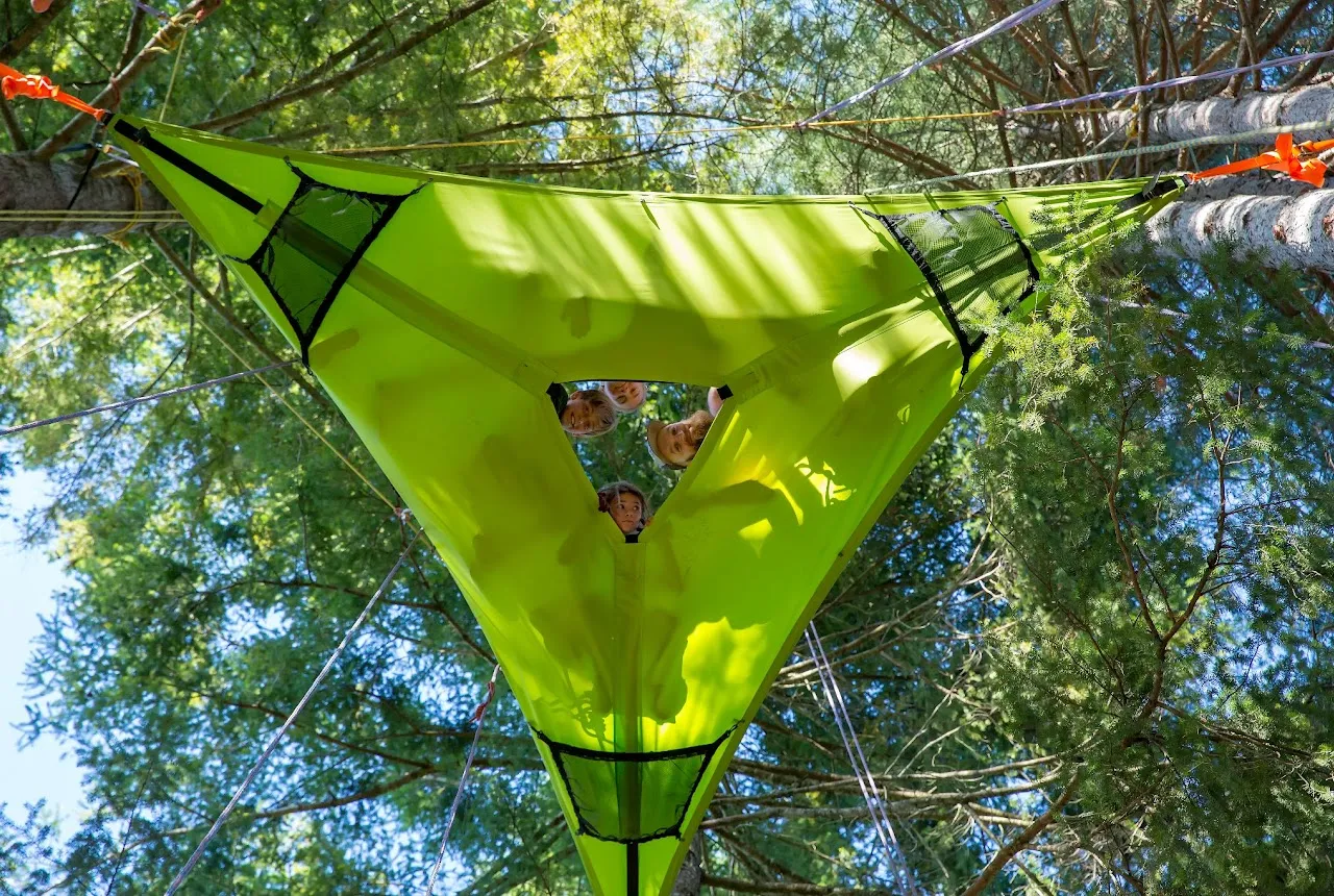 8 personnes maximum : 2 hamacs simples et un hamac double, + une Tentsile Trillium 3 personnes et/ou plateformes suspendues