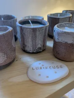 Parmi elles, Les Lumineuses, de délicates bougies en cire de soja BIO française, coulées dans des pots en grès entièrement modelés et décorés à la main. Leur particularité : une mèche en bois de pin qui crépite comme un petit feu de cheminée, et des messages ou dessins qui apportent une touche personnelle. Une fois la bougie consommée, le pot devient un bel objet du quotidien : pot à cactus, vide-poche ou pot à crayons.