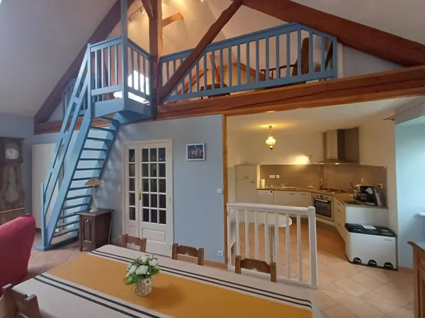 Ce gite est situé au 1er étage d'une grande bâtisse caussenarde qui abrite un autre gite au rez-de-chaussée (entrée indépendante). Il se compose d'un coin cuisine équipé et d'un séjour avec télévision. Deux chambres sont à votre disposition : 1 première avec un lit 140 et une seconde en mezzanine avec 1 lit 140 et 1 lit 90 séparé par un rideau. Vous trouverez également sur la mezzanine un salon TV.