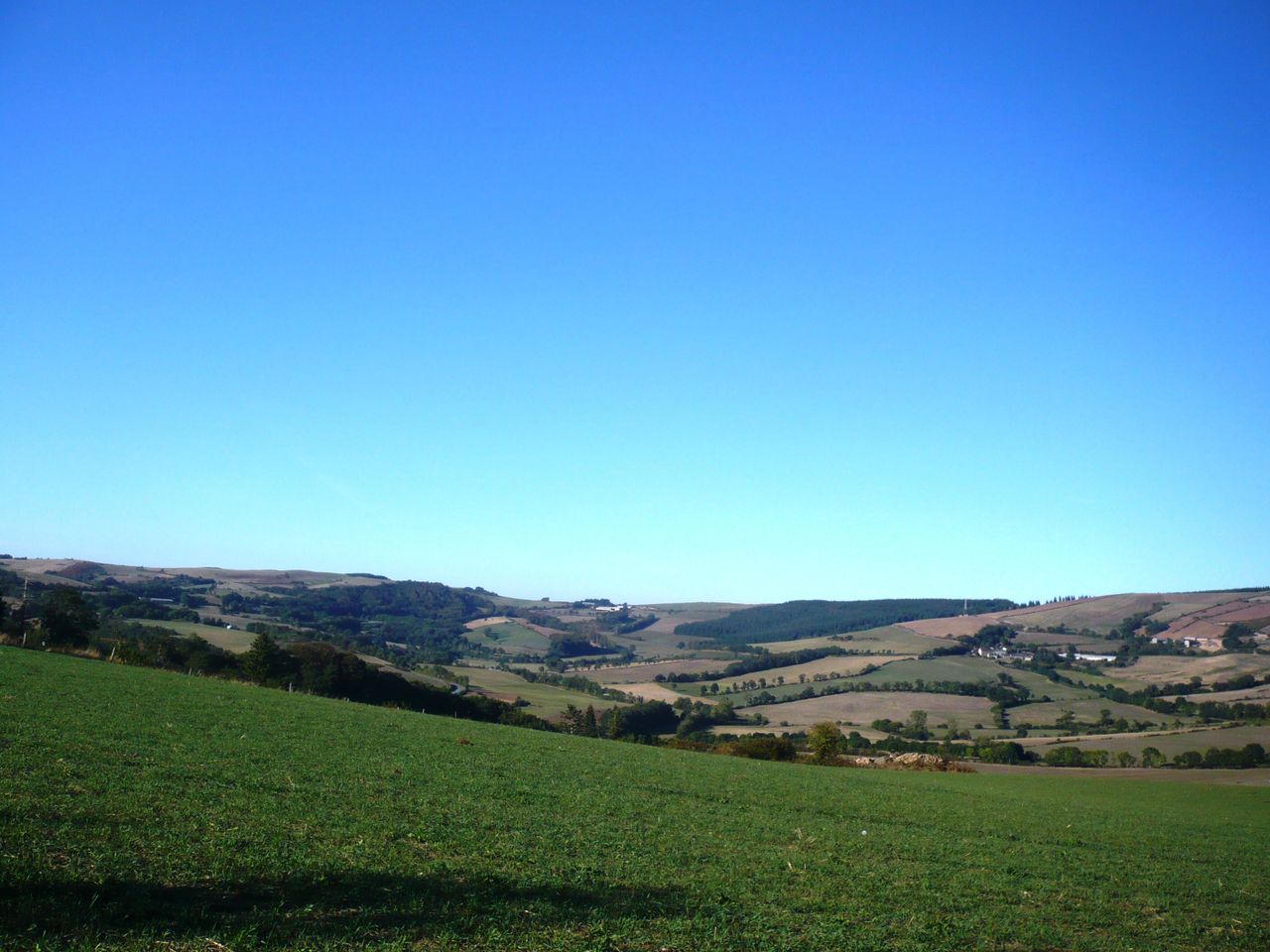 Suivre le chemin à droite qui redescend sur le versant est du Combal sur 1,5 km pour atteindre la route C5. On peut apercevoir le village de La Clau («La Ville Close») et sa tour Templière. Suivre la route sur 200 m et tourner à droite en direction de Gleysenove (“Église Neuve”) et suivre le Viaur (qui prend sa source au pied du Puech du Pal) puis le traverser pour atteindre la petite ferme fortifiée de Frontin (nom issu d’une famille importante de l’époque Gallo Romaine) et continuer sur le sentier qui rejoint Gleysenove par le versant sud du Combal.